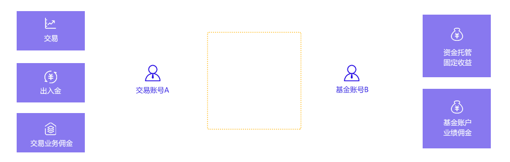 交易账号+资金账户,交易账号可以交易、赚取佣金,基金账户资金托管有固定收益,并按交易单分红。